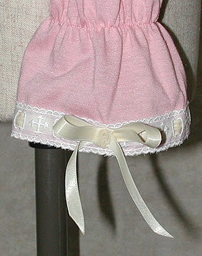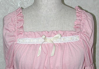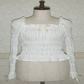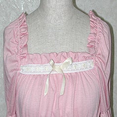 [Design notes] Elastic is included around the arms, neck, and body (4 elastic bands in the body). The ladder lace on the neckline and cuffs has a cross pattern.