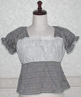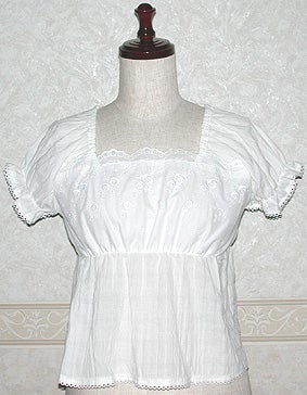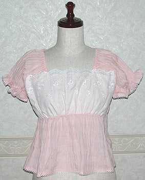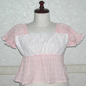 [Design notes] Elastic is sewn into the cuffs, under-bust seam, and into the collar from sleeves to the back. The lace is white for all colorways. The lace on the chest has rose embroidery. The cuffs and hem have picot lace.