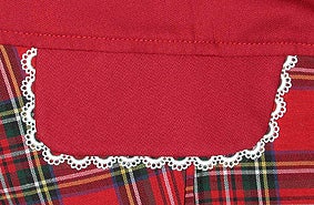 Bodice: T/C Burberry (65% Polyester, 35% Cotton) | Skirt: T/C Tartan (65% Polyester, 35% Cotton) | Lace: Chemical picot lace, Cotton lace | Lining: 100% Polyester