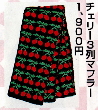 こちらも3列整列させたチェリーがいっぱいのとっても可愛いマフラーです。こんな可愛いマフラー、貴方なら苺とチェリー、どちらを選びますか???