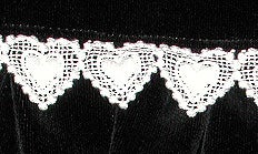 [Design notes] Lining included. The back half of the waist is elasticized. The waist ties are attached and hide the shirring when tied. The lace is heart-shaped and is white for all colorways.