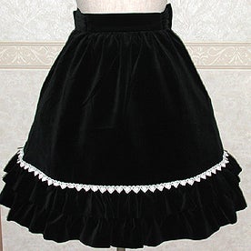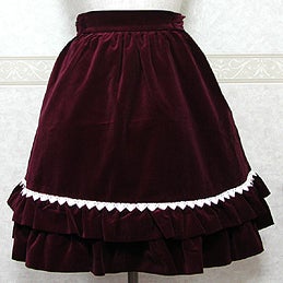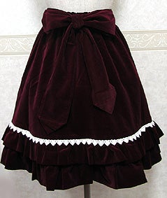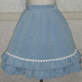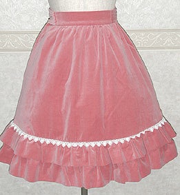 このスカート、のざヒトメボレ、即買い致しました(笑)ちょっと長めの丈といい、すその2段のフリルとレースのコンビネーションが抜群に良いです!! ウエストは後ろ半分がシャーリングゴムで後ろに結ぶ大きなリボンがゴム部分を隠してくれます。