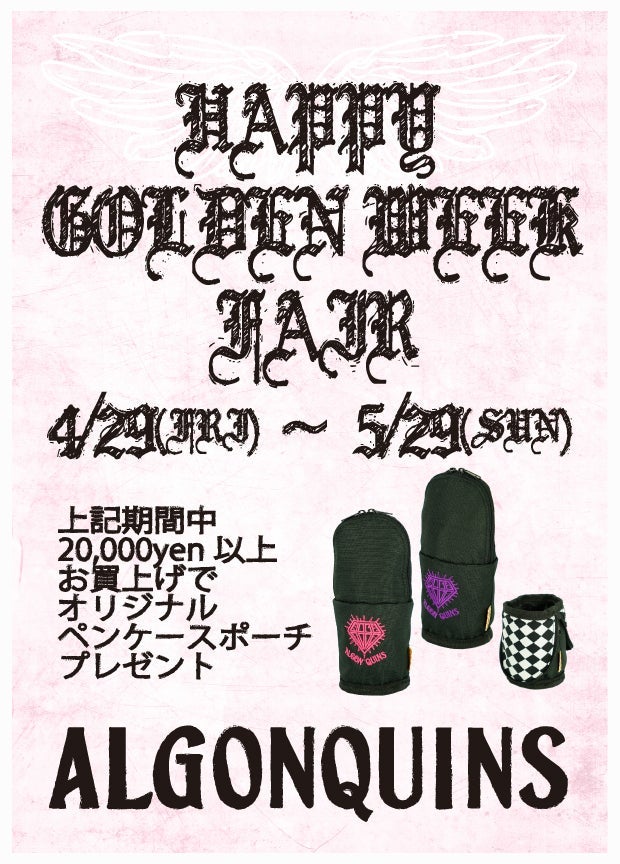 2016/4/29(Fri)~5/29(Sun) Purchase regular priced items for ¥20,000 and receive an original pen case pouch as a gift★ The embroidery colors are pink and purple! *Even during the period, distribution will end as soon as stock runs out.