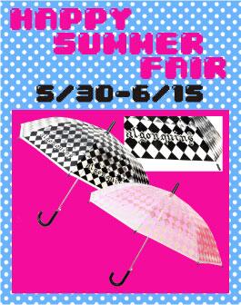 本日5/30より「HAPPY SUMMER FAIR」スタート!15000円以上お買い上げで(SALE品除く)ノベルティーのオリジナル傘をプレゼント!毎年人気のアイテムなのでお早目にどうぞ♪