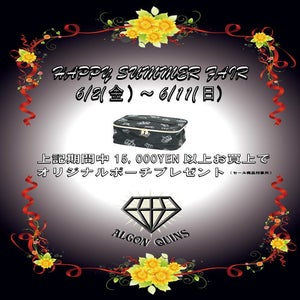 6/2(fri)~6/11(sun)上記期間中、定価商品を¥15,000以上お買い上げの方を対象に、オリジナルバニティポーチを差し上げます!便利な大きめサイズで使い勝手もばっちり!可愛いパッケージのコスメとか並べたいですね~( ´艸`)