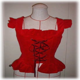 Frilled Shoulder Corset (synthetic leather / red / 10 bones)