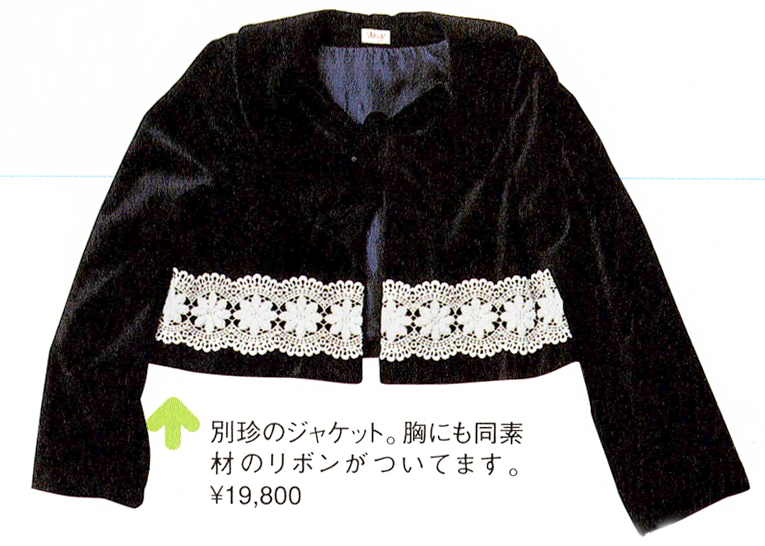 別珍のジャケット。胸にも同素材 のリボ ン が つ い てます。