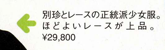 別珍とレースの正統派少女服。ほ ど よ い レ ー ス が 上 品 。