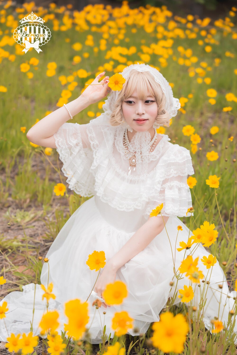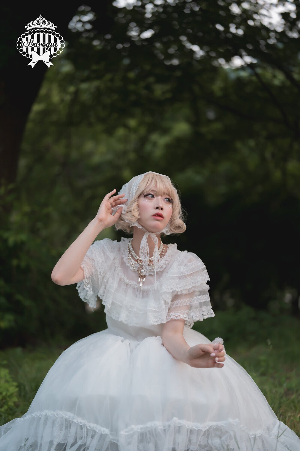 가벼운 튤 위에 랏셀 레이스를 얹은 날개같은 소매와