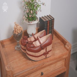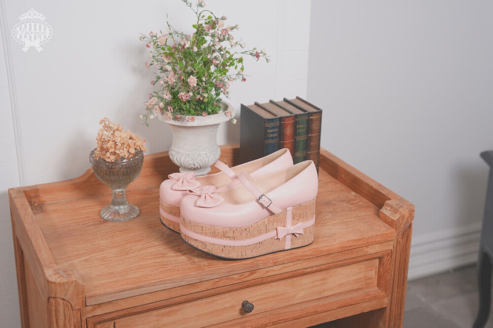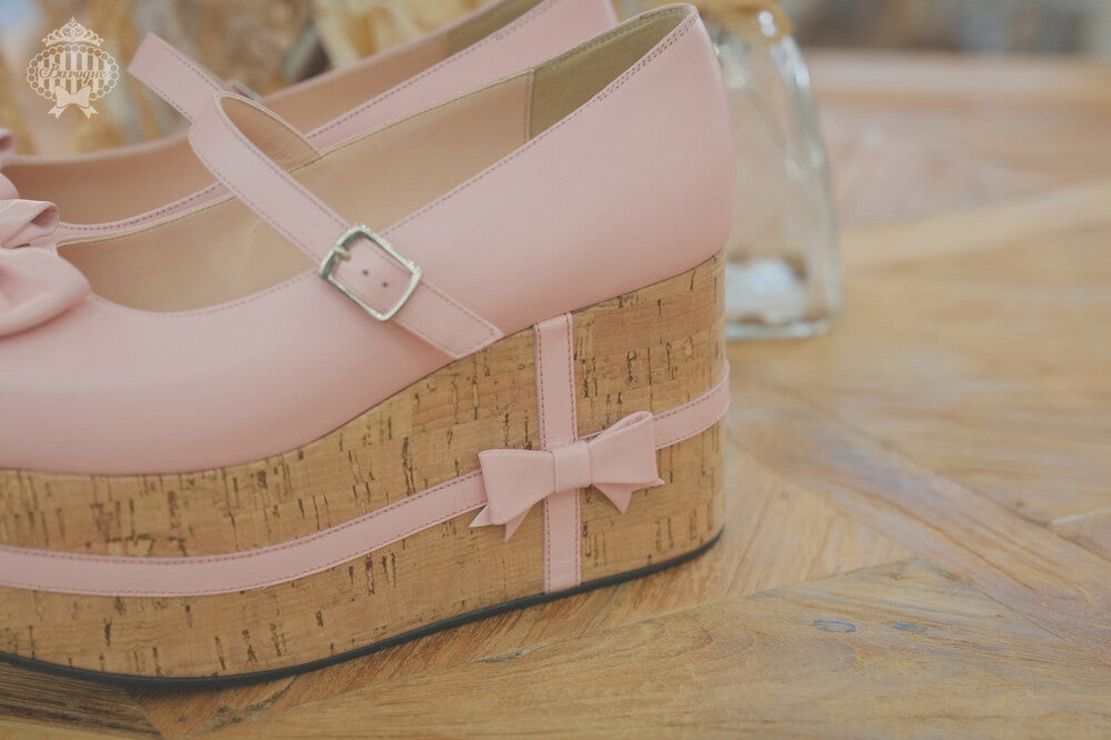 The ribbon detail gently draped across the toe and the unique heel design, reminiscent of a gift box, will transform even the most ordinary day into a fairytale scene. The natural cork-like heel adds height while providing the comfort of walking on clouds.