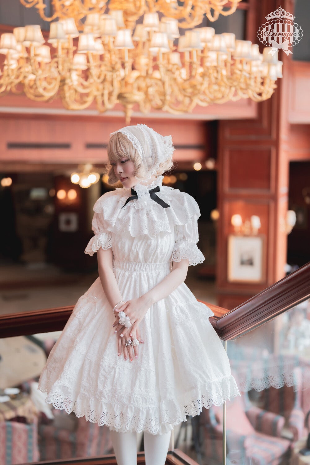 풍성한 퍼프 소매와 탄력 있는 허리 셔링이 사랑스러운 실루엣을 연출하며, 스커트에는 장미 모티프의 레이스 장식이 섬세하게 이어져 있는, 올드 스쿨 로리타의 낭만을 담아낸 원피스 입니다. 탈착 소매와 카라로 다양한 스타일의 연출이 가능하며, 보닛과 함께 코디하면 한 송이 꽃다발을 품은 듯, 더욱 우아하고 완성도 높은 스타일을 즐기실 수 있습니다.