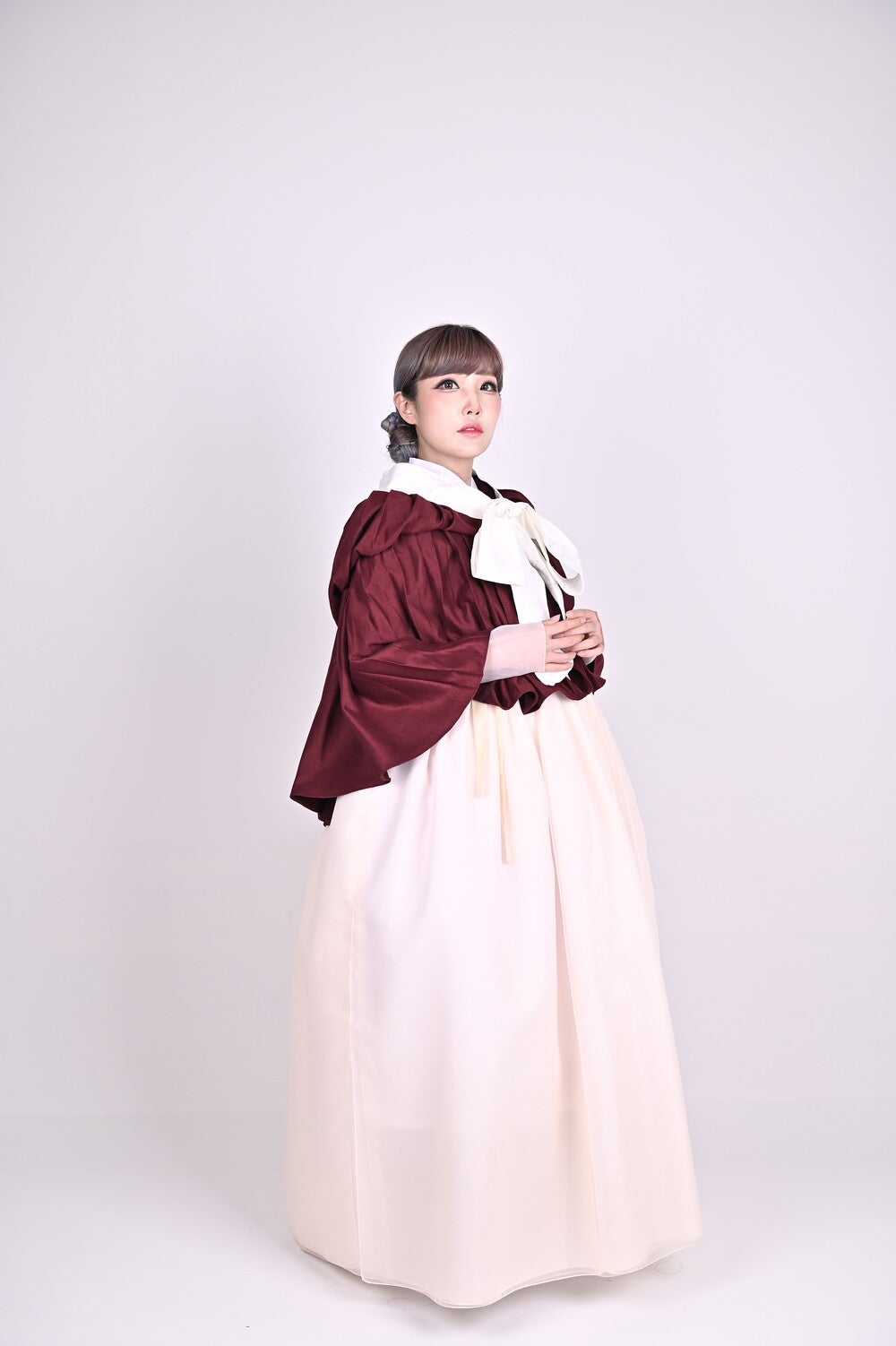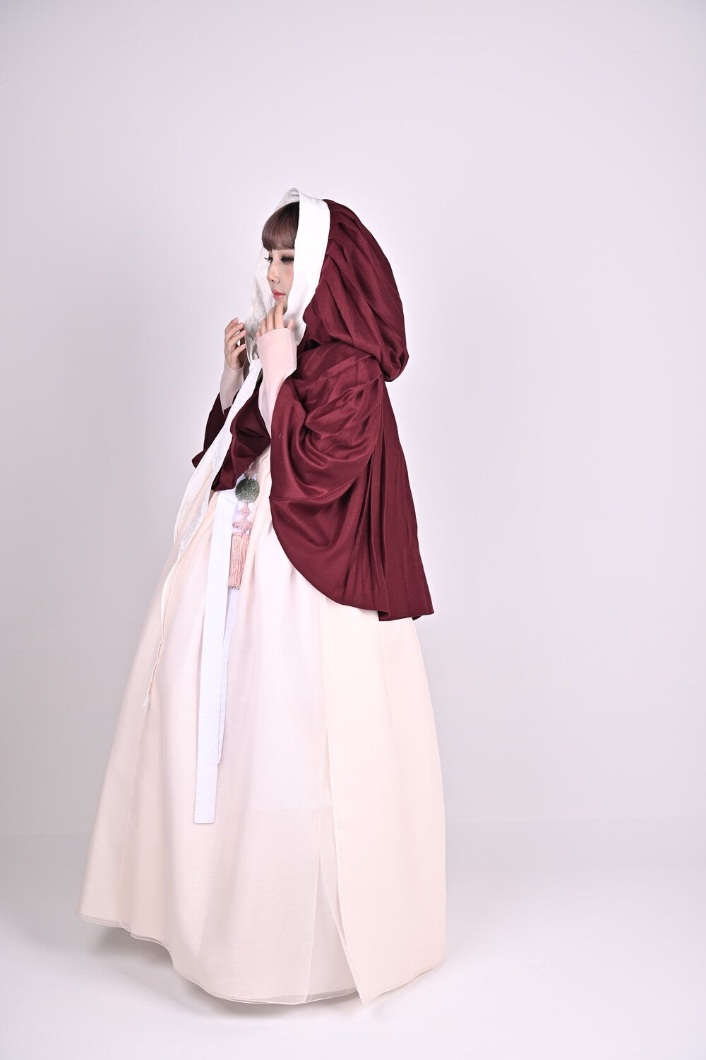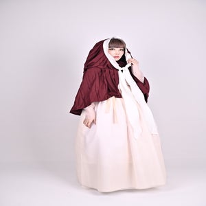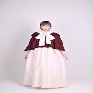 This hanbok series is being released for the first time since 2020. The sseugae chima, originally intended as an outer garment and requiring both hands, is less practical in modern times. This hanbok outer garment has been redesigned to include a hood that covers the head and a cape that drape over the shoulders. It can be worn from the mid-season to winter, worn over outerwear. The hood, in particular, is generously sized, providing ample coverage for the head and face. The ties at the front create a lovely ribbon.