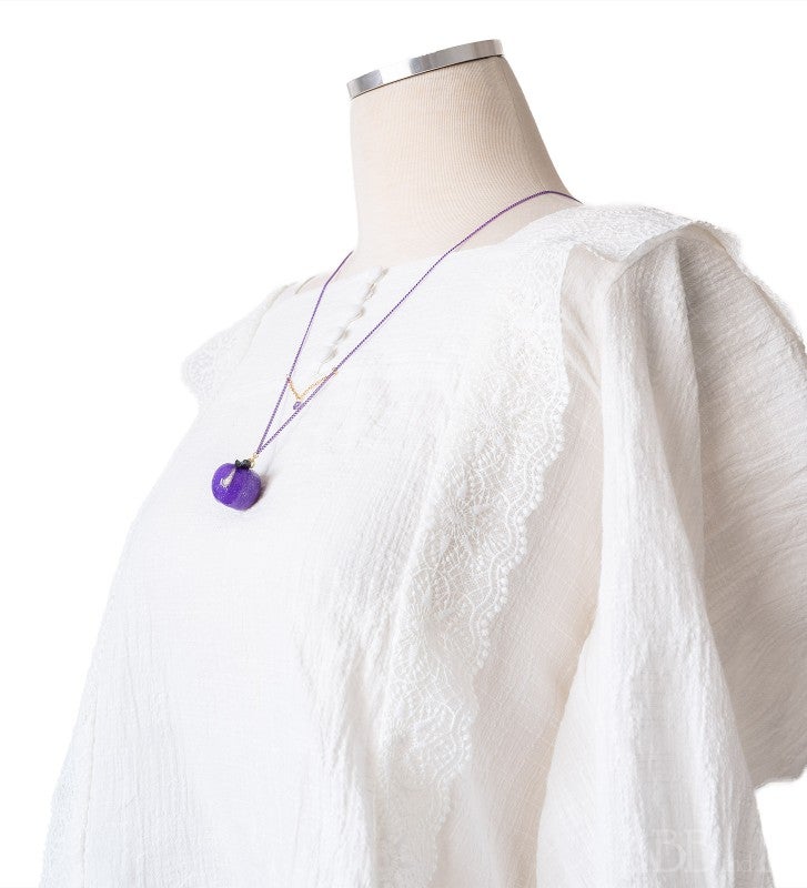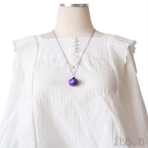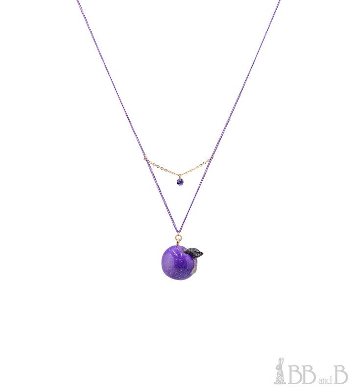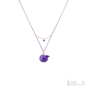A rich deep purple apple has been birthed from our Charmed Apple series with this latest addition!Blessed with shiny coating of glimmer and glitter, these charmed apples feature a black leaf stem and a custom matching purple chain. Lovely purple Swarovski crystal hangs as a charm for more purple goodness!