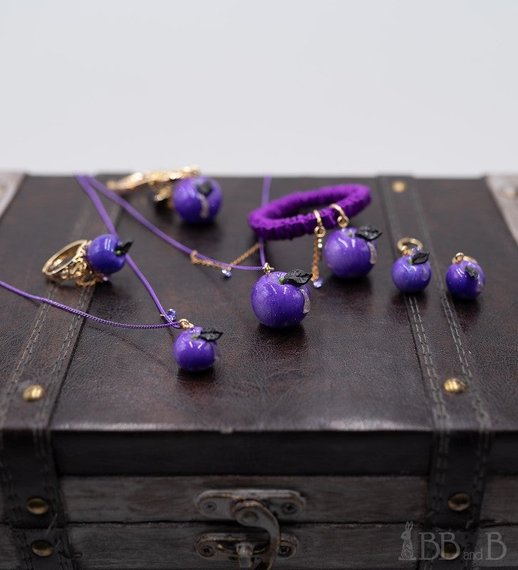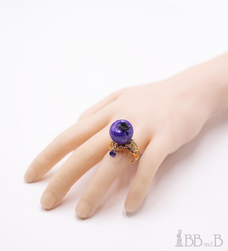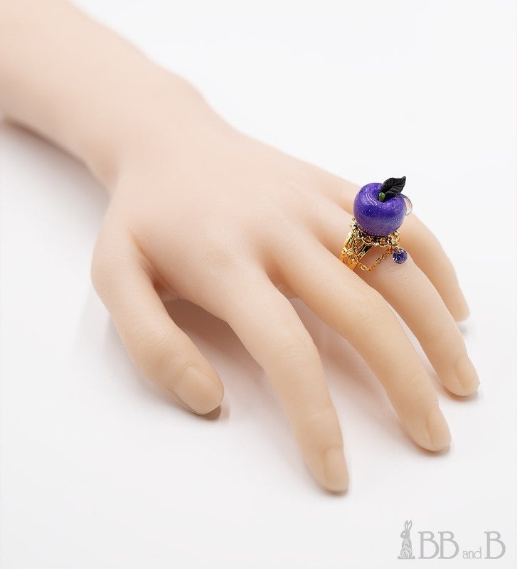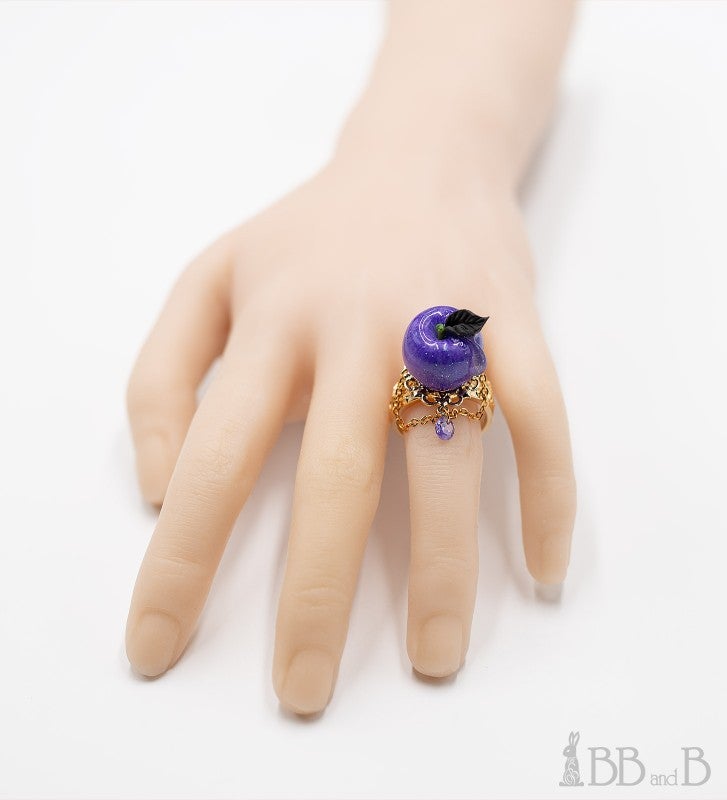 A rich deep purple apple has been birthed from our Charmed Apple series with this latest addition!Blessed with shiny coating of glimmer and glitter, this charmed apple ring sits politely with a cute purple Swarovski crystal charm.