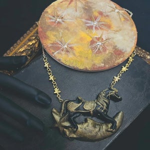 Boo!Do ~ Wooden Horse Running on the Moon Necklace