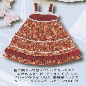 Brand comment: A mix of plain color (twill) and rose pattern (wrinkled thin twill).The high waist and A-line silhouette give it a cute yet elegant look.The back is shirred and has elastic at the top and bottom of the bust.