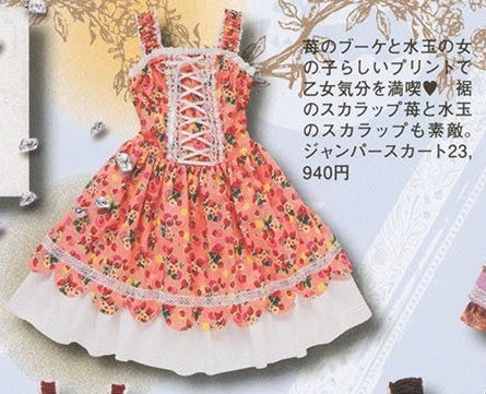 苺と水玉のスカラップジャンパースカート