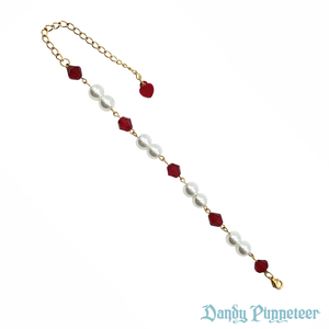 It has a custom laser cut transparent red acrylic heart drop on the end of the cha