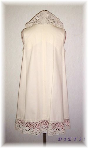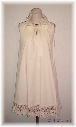 襟と裾に豪華なレースを施しつつシンプルなドロップラインのワンピース。