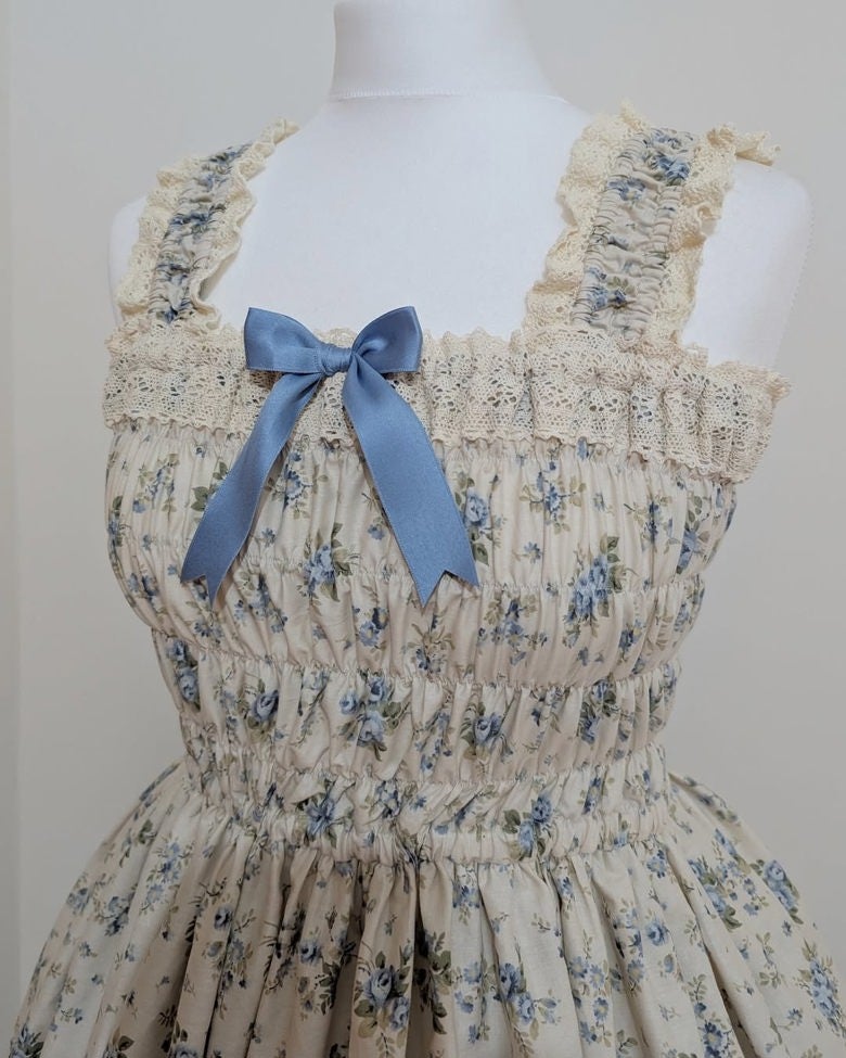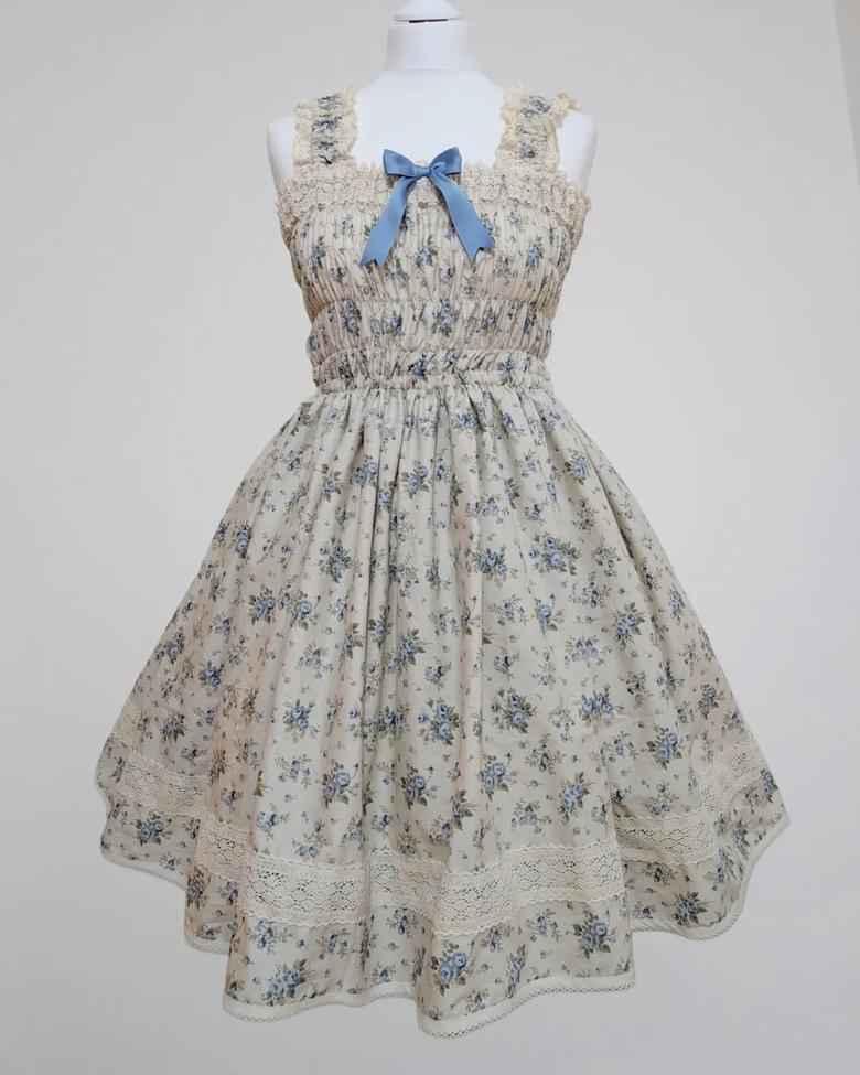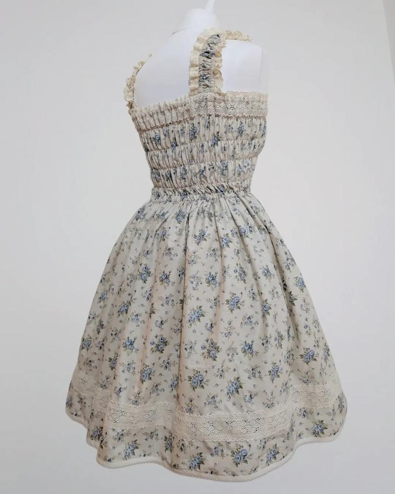 Distant Melody ~ Blue Floral Shirring JSK