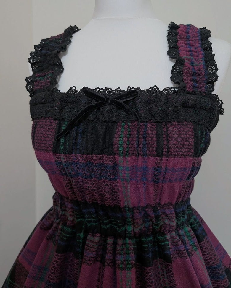 Distant Melody ~ Purple Tartan Wool Shirring JSK