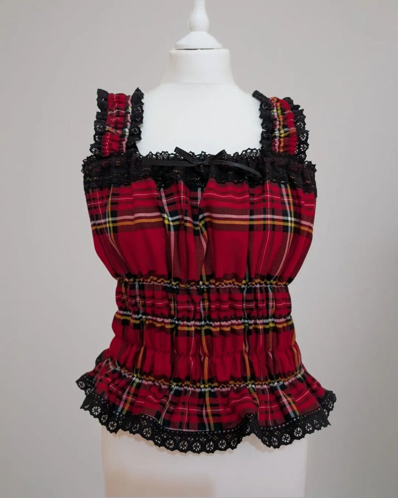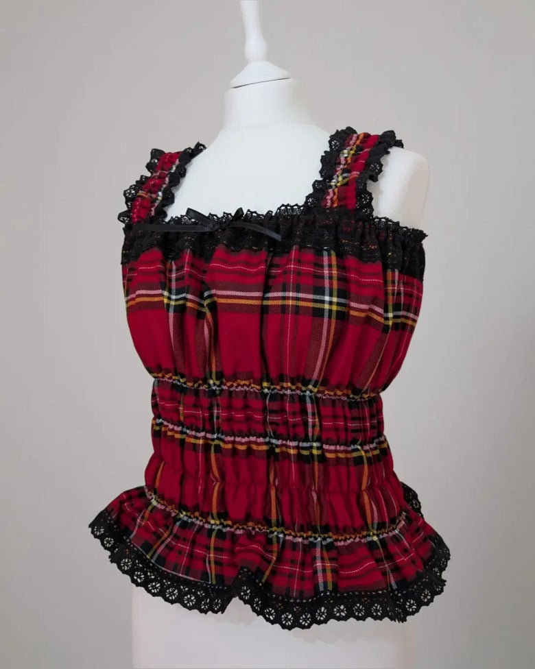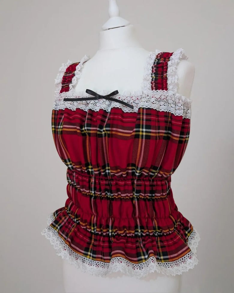 Distant Melody ~ Tartan Milkmaid Camisole (Large Size)