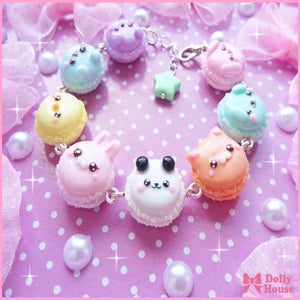 🍬🐰🐻 Kawaii Macaroon Animal Bracelet by Dolly House ✨🌸Add a touch of dreamy sweetness to your style with this adorable Kawaii Macaroon Animal Bracelet by Dolly House! (´∀`)♡ This charming accessory features a series of cute pastel macaroons shaped like adorable animals, including bunnies, bears, cats, chicks, and more! Each one is lovingly handmade with attention to detail, capturing the essence of playful and whimsical kawaii fashion. Perfect for fairy kei, pop kei, lolita fashion, and all lovers of Japanese kawaii culture! 🌈Each little macaroon is crafted to look like a fluffy, colorful treat with cute animal faces, making it the perfect statement piece for your outfit. Whether you’re dressing up for a cute day out or just adding some fun to your everyday look, this bracelet will make you feel magical and sweet! 💕