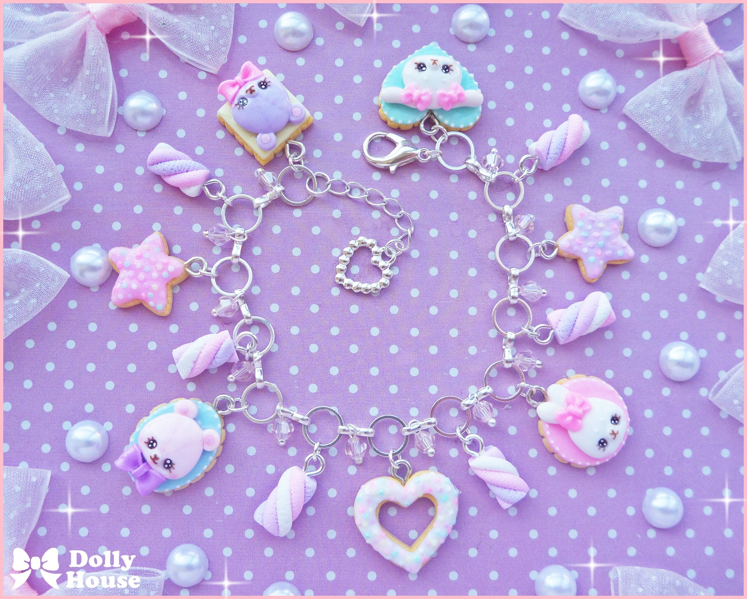 ♥Kawaii Sweet Cookies & Marshmallow Bracelet by Dolly House♥A cute sweet smelling bracelet with kawaii charms.