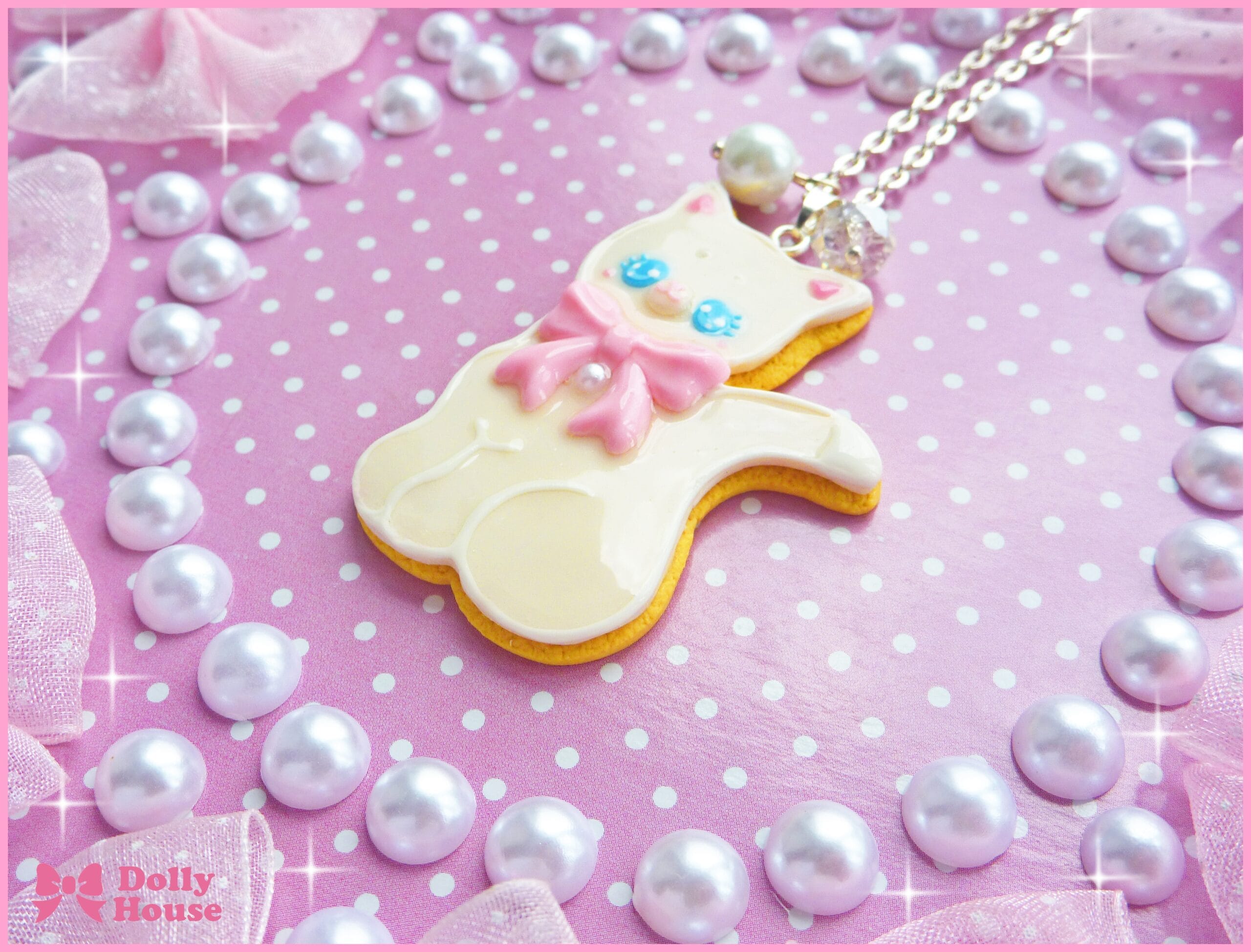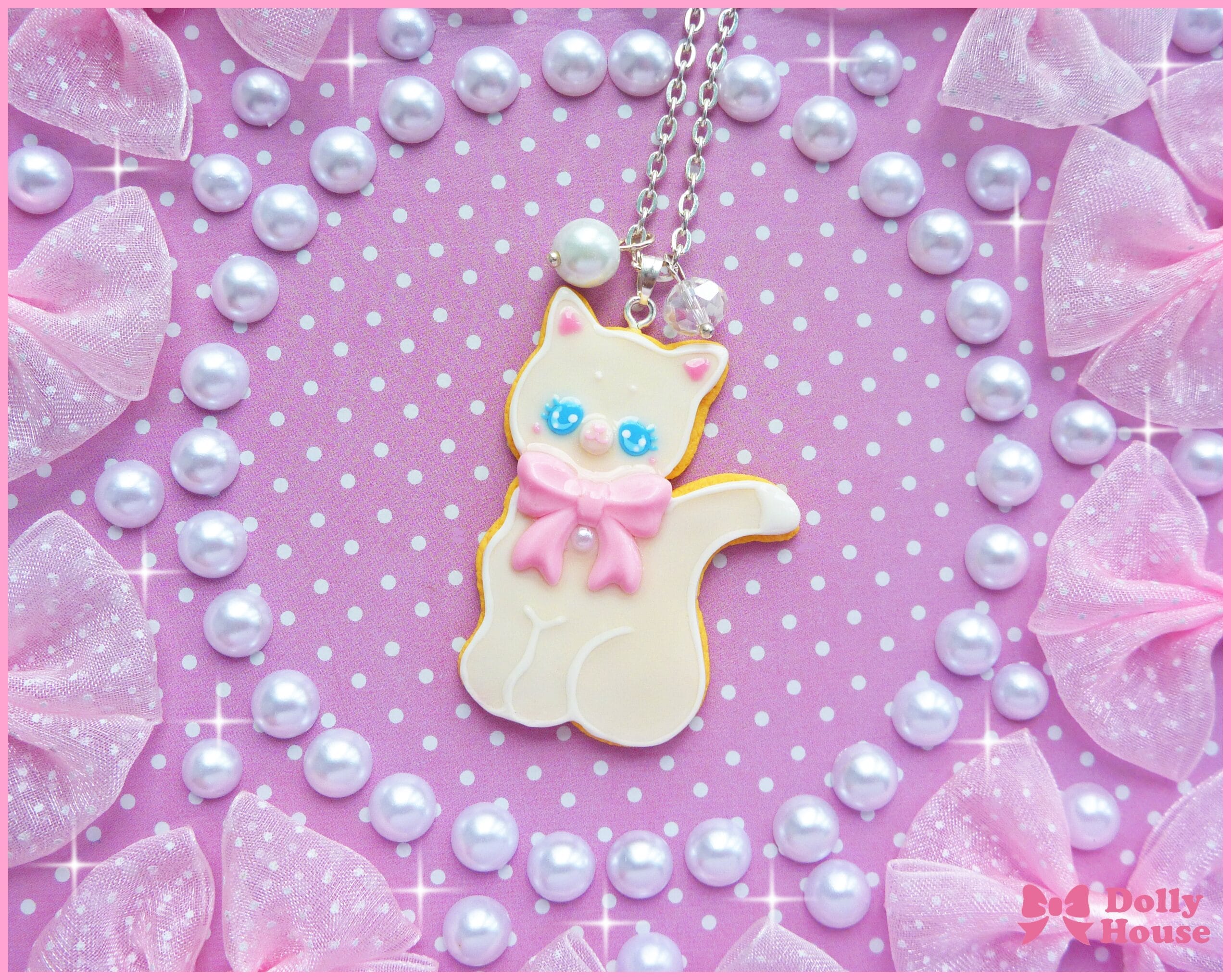 Dolly House ~ Kawaii White Cat Cookie Necklace