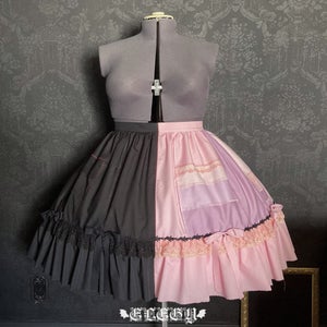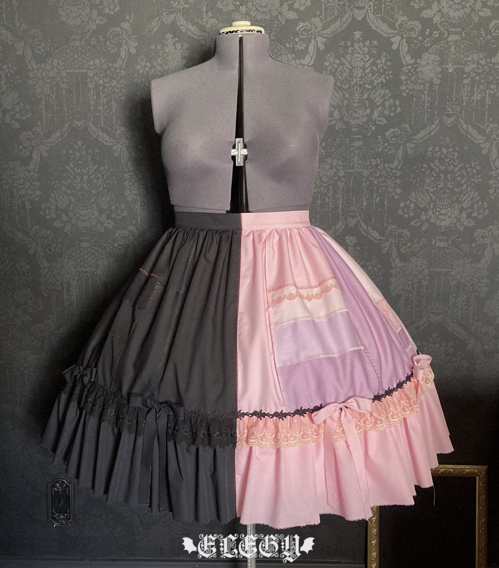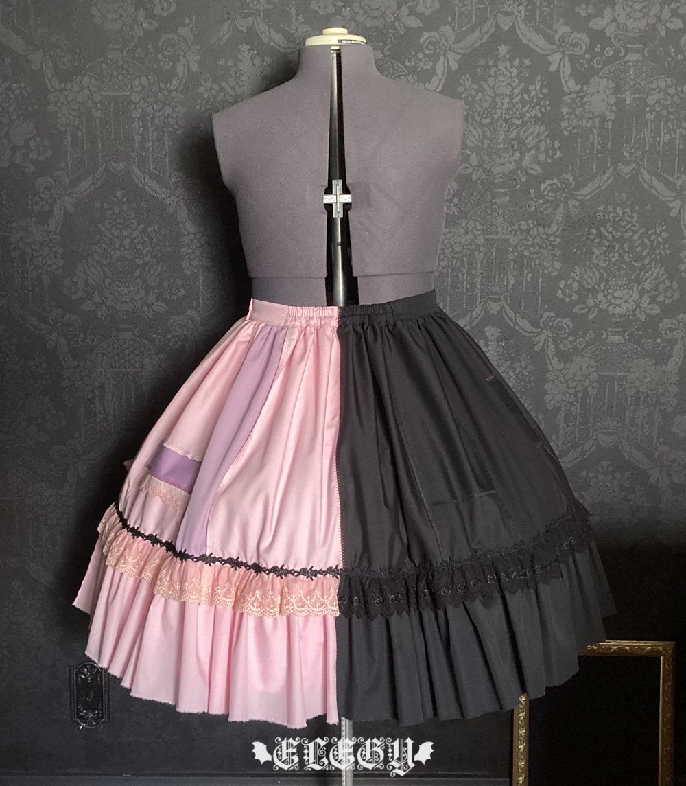 ✦ Fully lined with 100% polyester lining. The lining is also split! White on the pastel side, black on the black. (See last pic for a work-in-progress snap of the split JSK, as I kept forgetting to take an actual ~good~ photo showing the lining.)