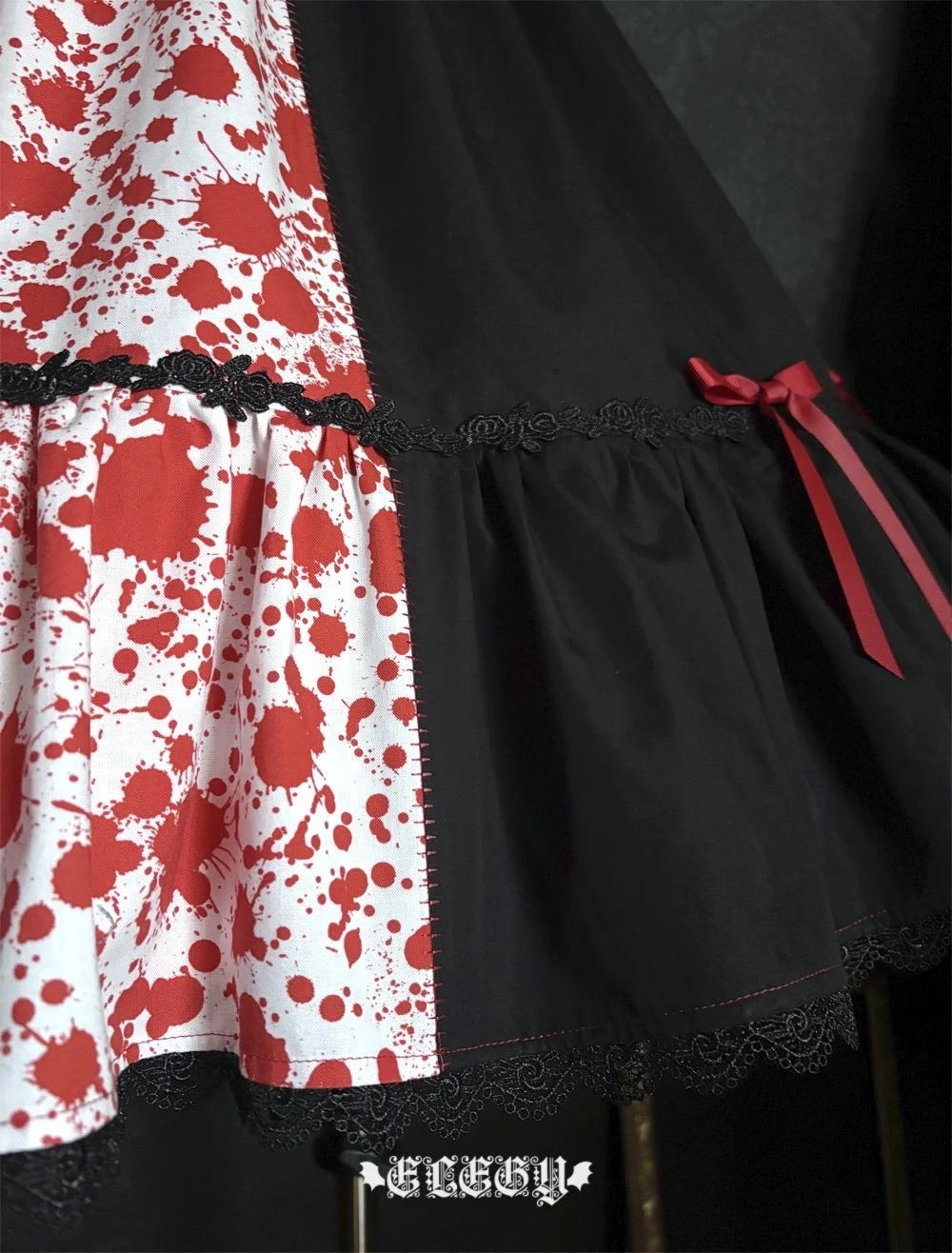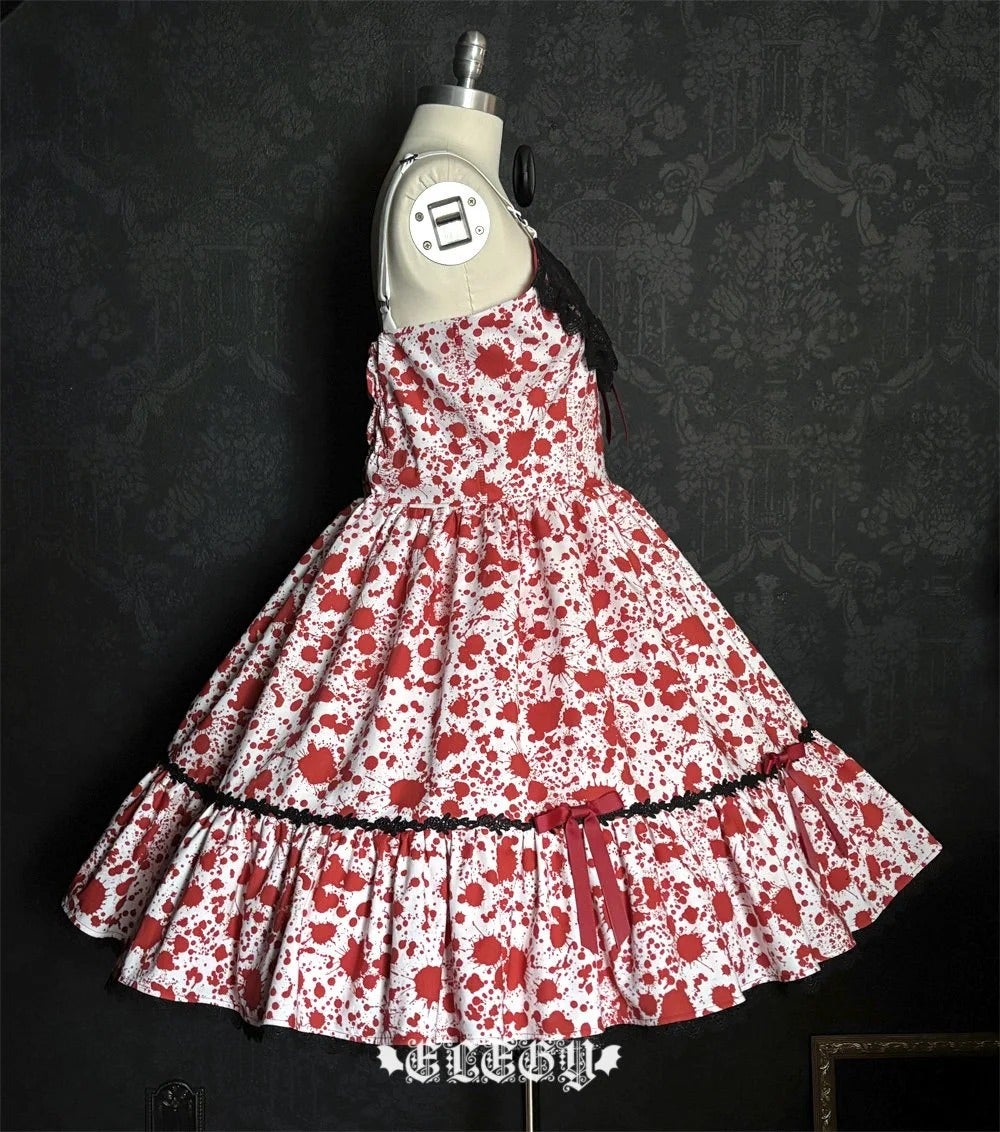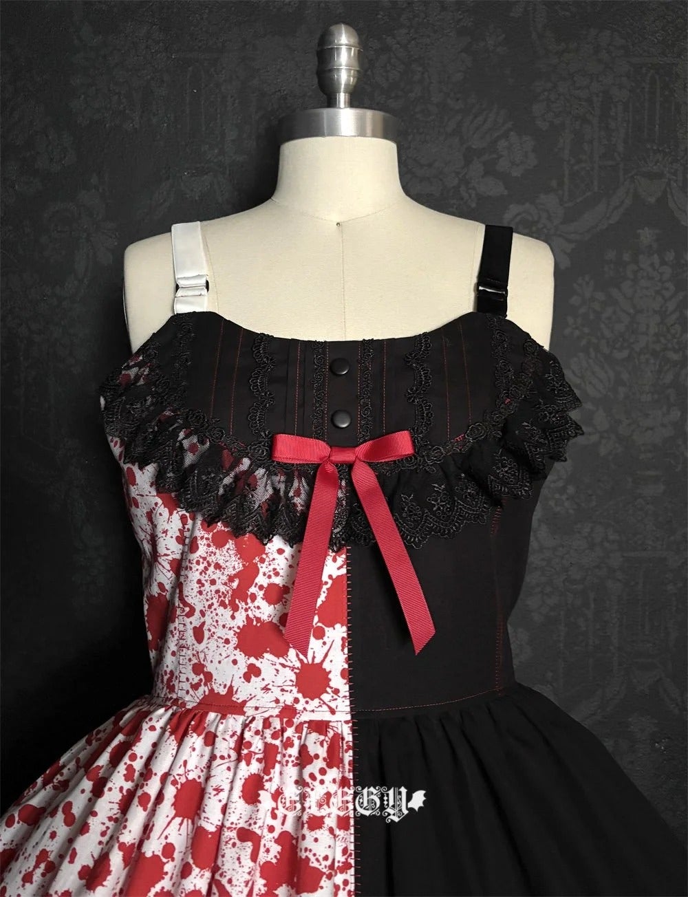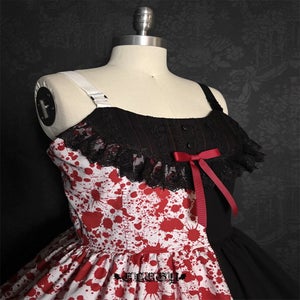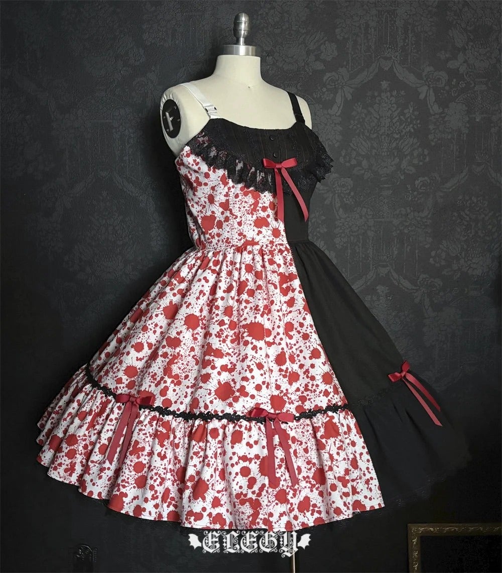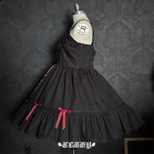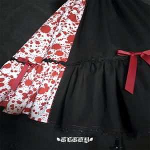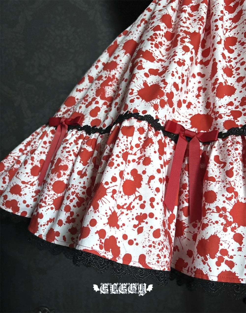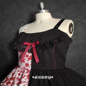✦ Bodice includes a pin-tuck bib with red stitching, various laces, 2 buttons, and a removable grosgrain bow.