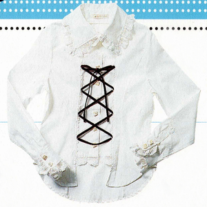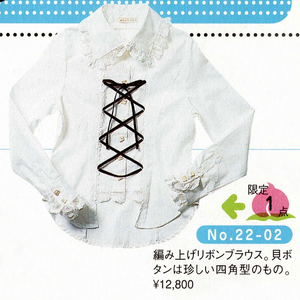 [Product description] A lace-up ribbon blouse. The shell buttons are unusually square.