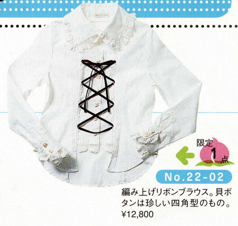 編み上げリボンブラウス。貝ボタンは珍しい四角型のもの