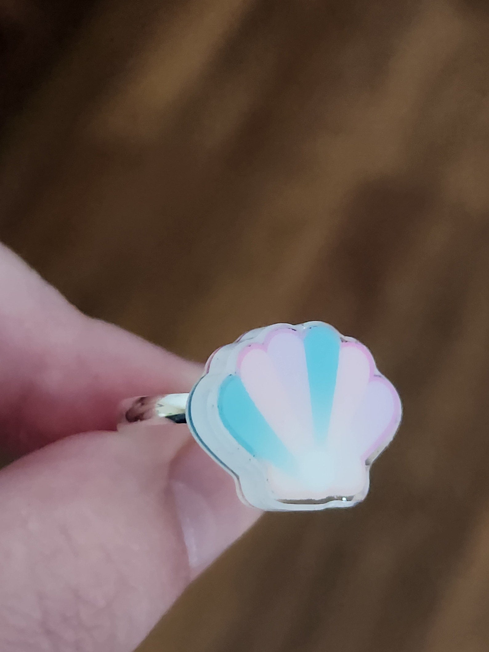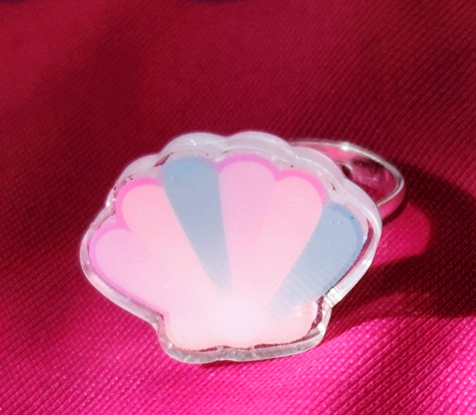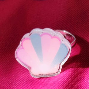 "One adjustable ring made with 2 cm wide, 3 mm thick silver glitter acrylic! Designed and assembled by me."