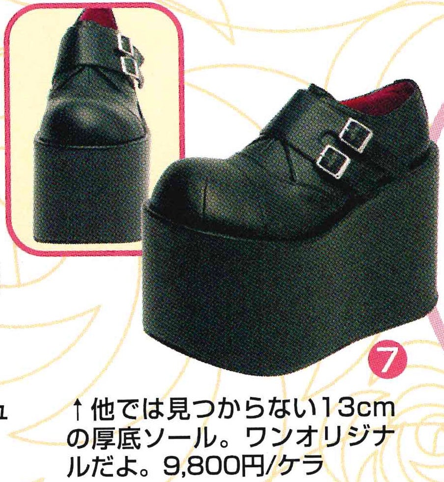 Item description: "↑13cm thick sole that you won't find anywhere else. It's a one-of-a-kind original. 9,800 yen/kera"