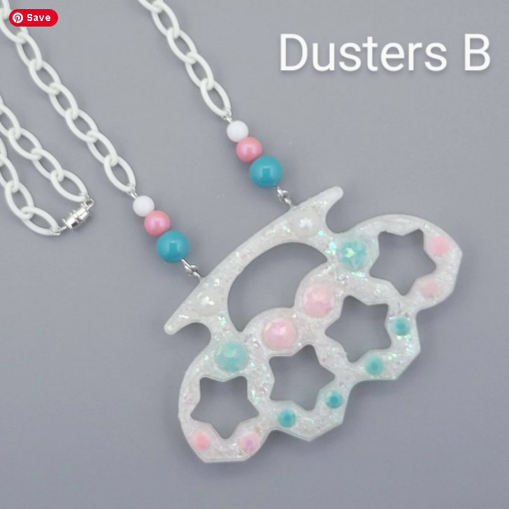 - Hand-poured resin with rhinestone, pearl, and glitter inlay