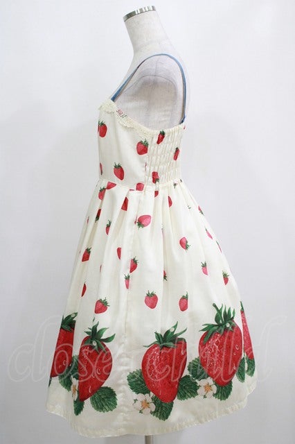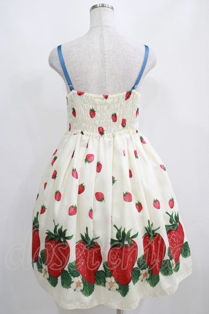 ストロベリープリントリボンブローチ付キャミワンピース