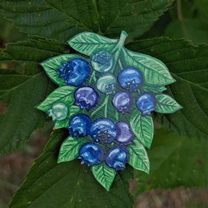 "The bilberry while related to the more recognizable blueberry is a wild European cousin. This dainty fruit is digitally printed on birchwood.
