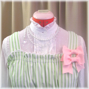The brooch attaches to the small bows with clasps.The brooch also comes with an extender chain so you can wear it as a necklace