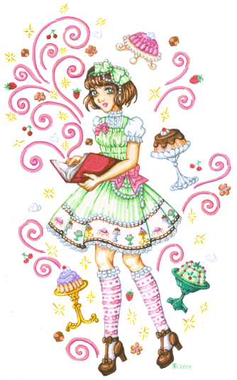 Inspired by the delightful illustrations found in cookbooks from the 1800's and turn of the century: such as those found in "Mrs. Beeton's Book of Household Management"; this line is a more grown up version of the traditional lolita cake and sweets print; with a focus on elegant delectable details, and a soft and versatile color scheme.