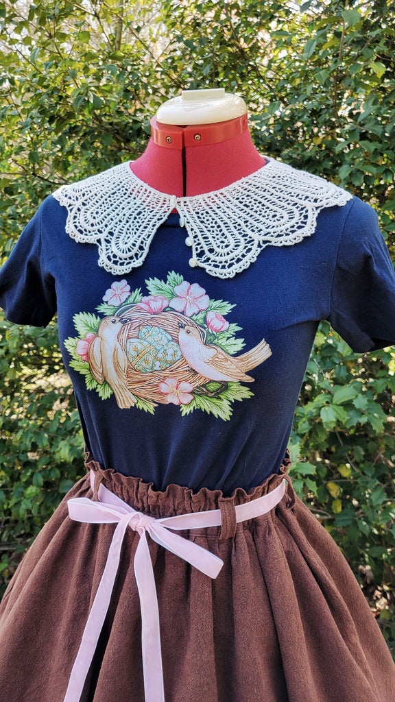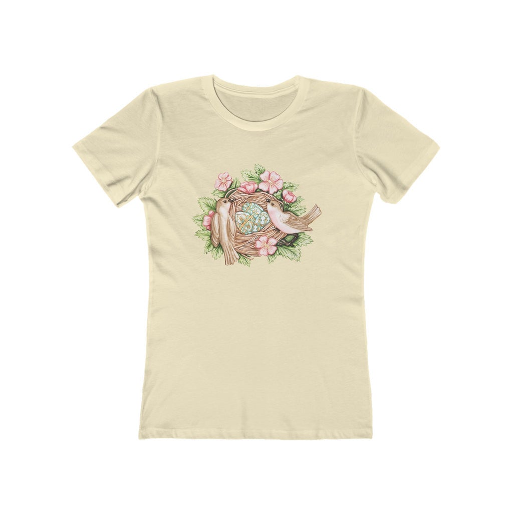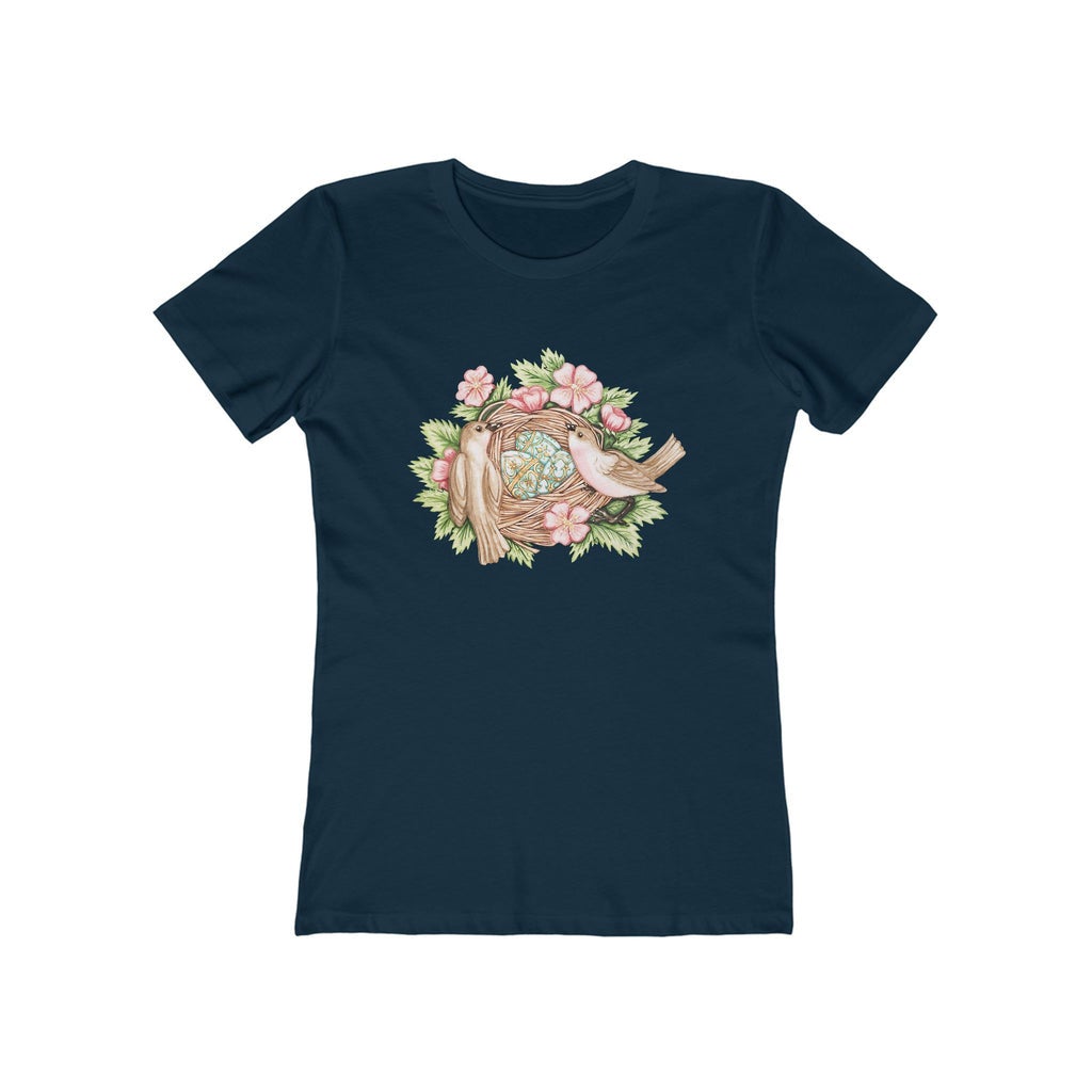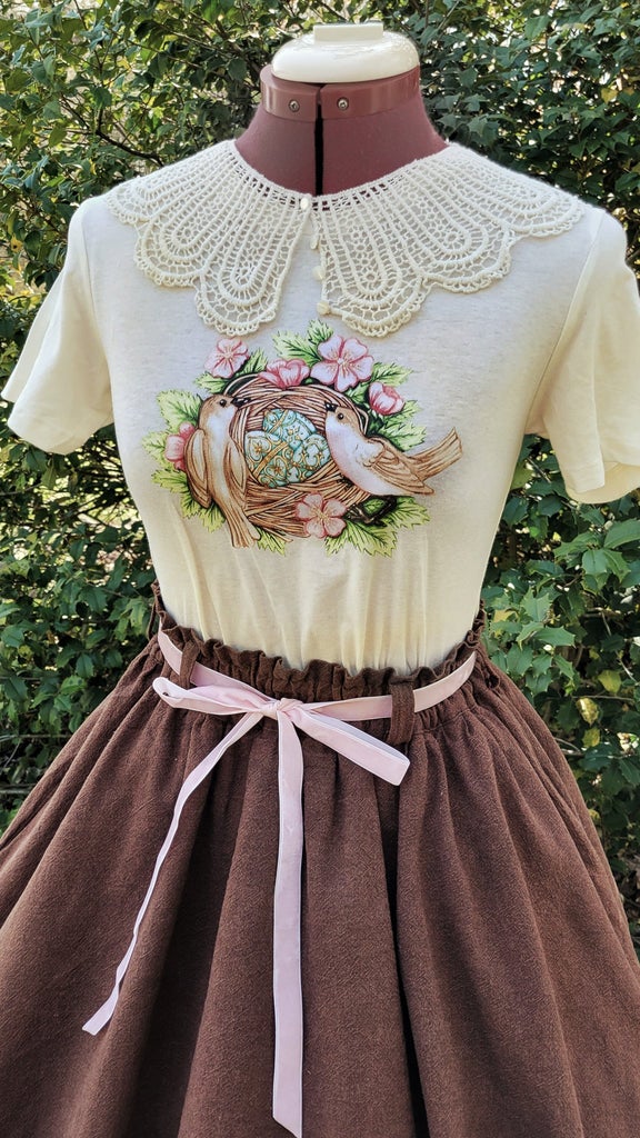 "Inspired by the opulence and delicacy of Faberge eggs and the careful architecture of birds' nests this whimsical T-shirt is the perfect addition to your spring or anytime wardrobe. Artwork was originally hand done with watercolors.