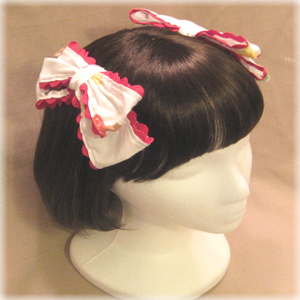 "Matching 2 bow hair combs with ric-rac trim mounted on plastic combs."