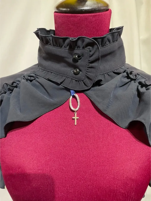[Brand comment] A stand-up collar cape with a large gothic cross. Can be worn over a blouse or dress for a chic look.