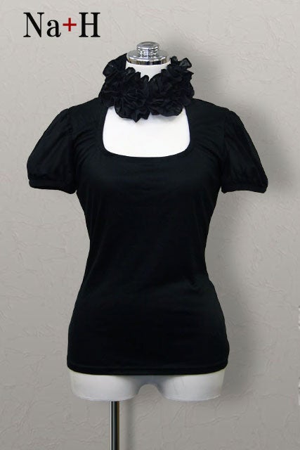 Frill Puff Sleeve Cutsew (High Neck)
