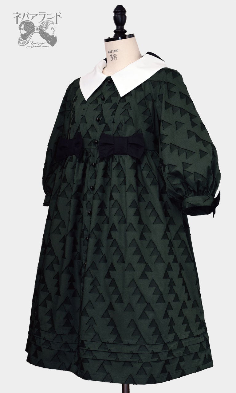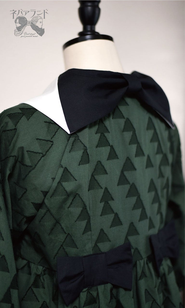 Deep green, white collar, and black ribbons evoke a smart atmosphere.