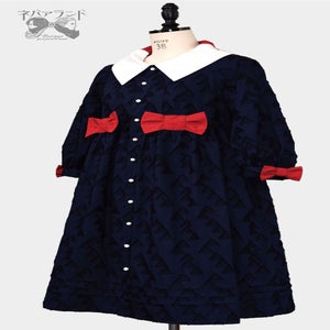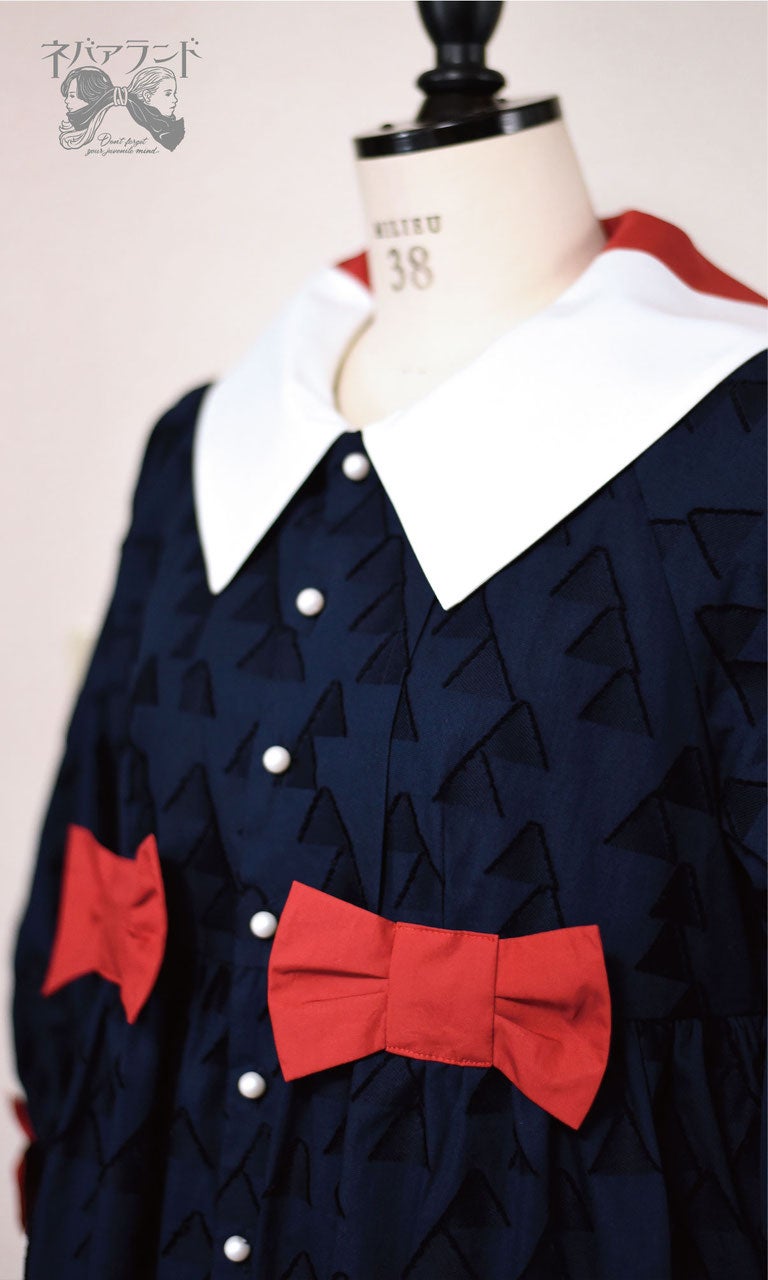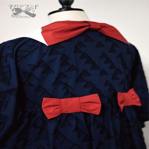 The navy blue x white collar combination with red ribbons make for a gorgeous piece!