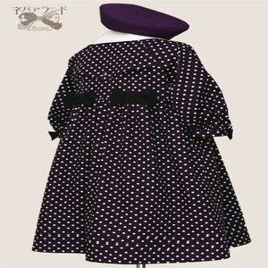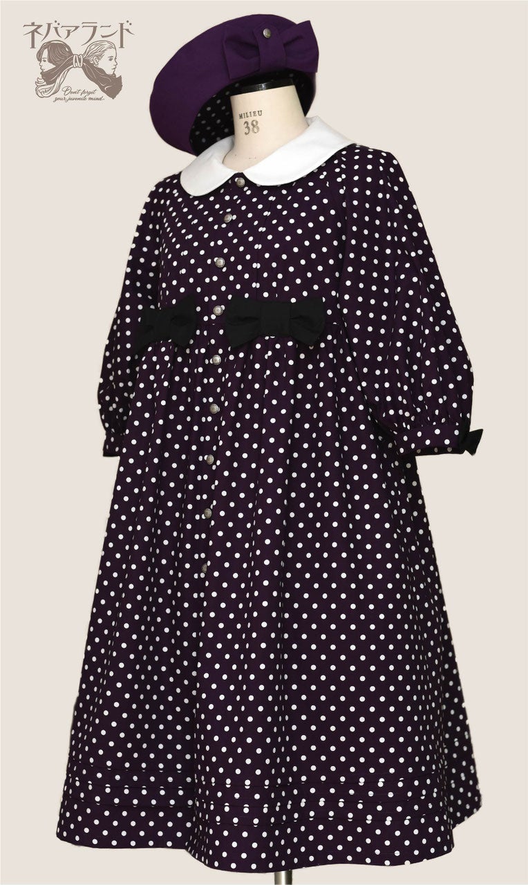 菫色×白×黒の配色に、銀色のボタンが、ちょぴりレトロな印象。