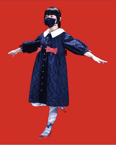 大きな白い衿と、バックスタイルのアンブレラヨークがポイントです。