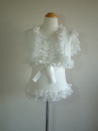 ミニ丈ボレロとプルオーバーのアンサンブルです。