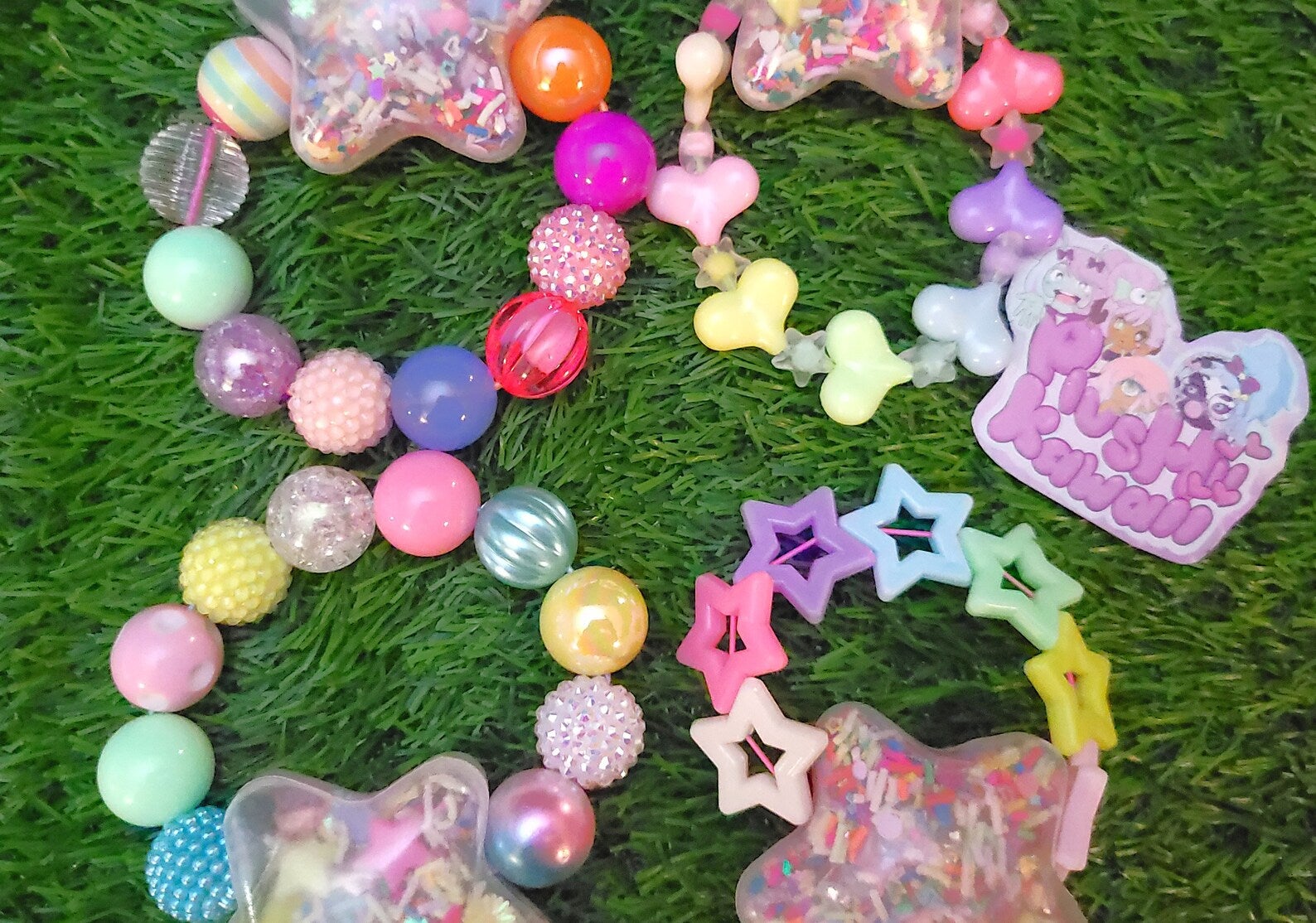 Available band styles include open stars, heart beads, and pastel or neon gumballs.